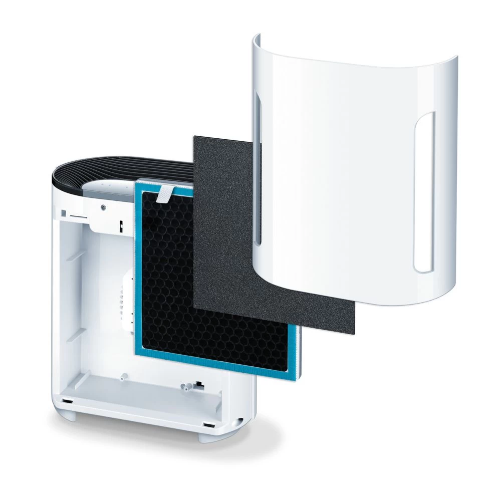 - Nettoie l’air grâce à un système de filtre 3 couches (pré-filtre, HEPA filtre et filtre carbone actif)