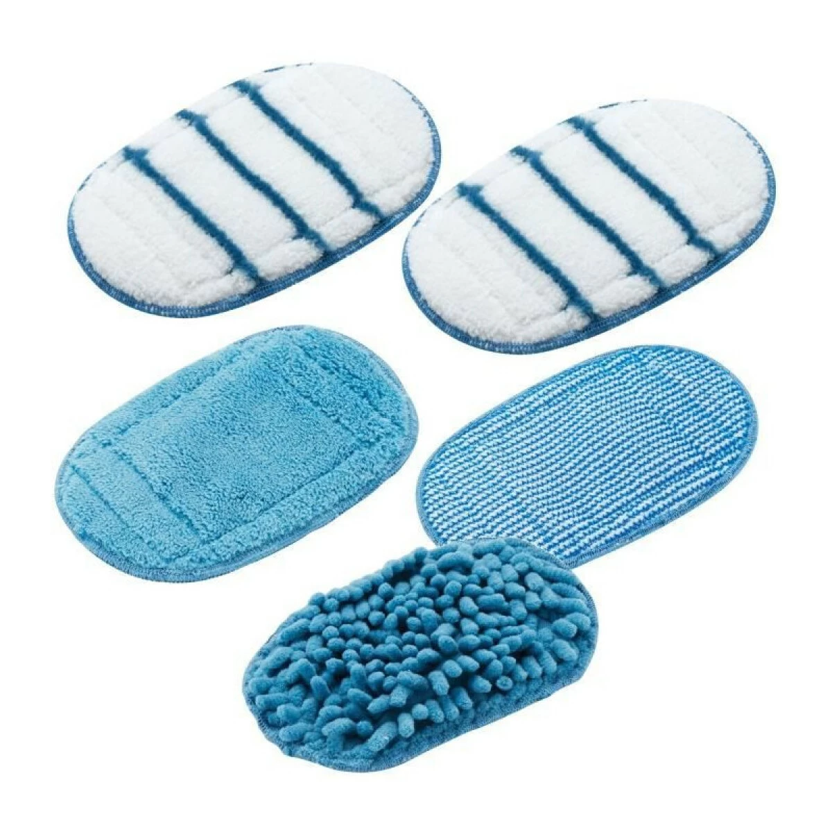 Lot comprenant 5 patins pour gant steamitt et 2 patins pour balai vapeur. 2 patins en microfibre. 1 patin en microfibre tres doux. 1 patin grattoir. 1 patin de finition. 2 patins de technologie easy glide pour balai vapeur.