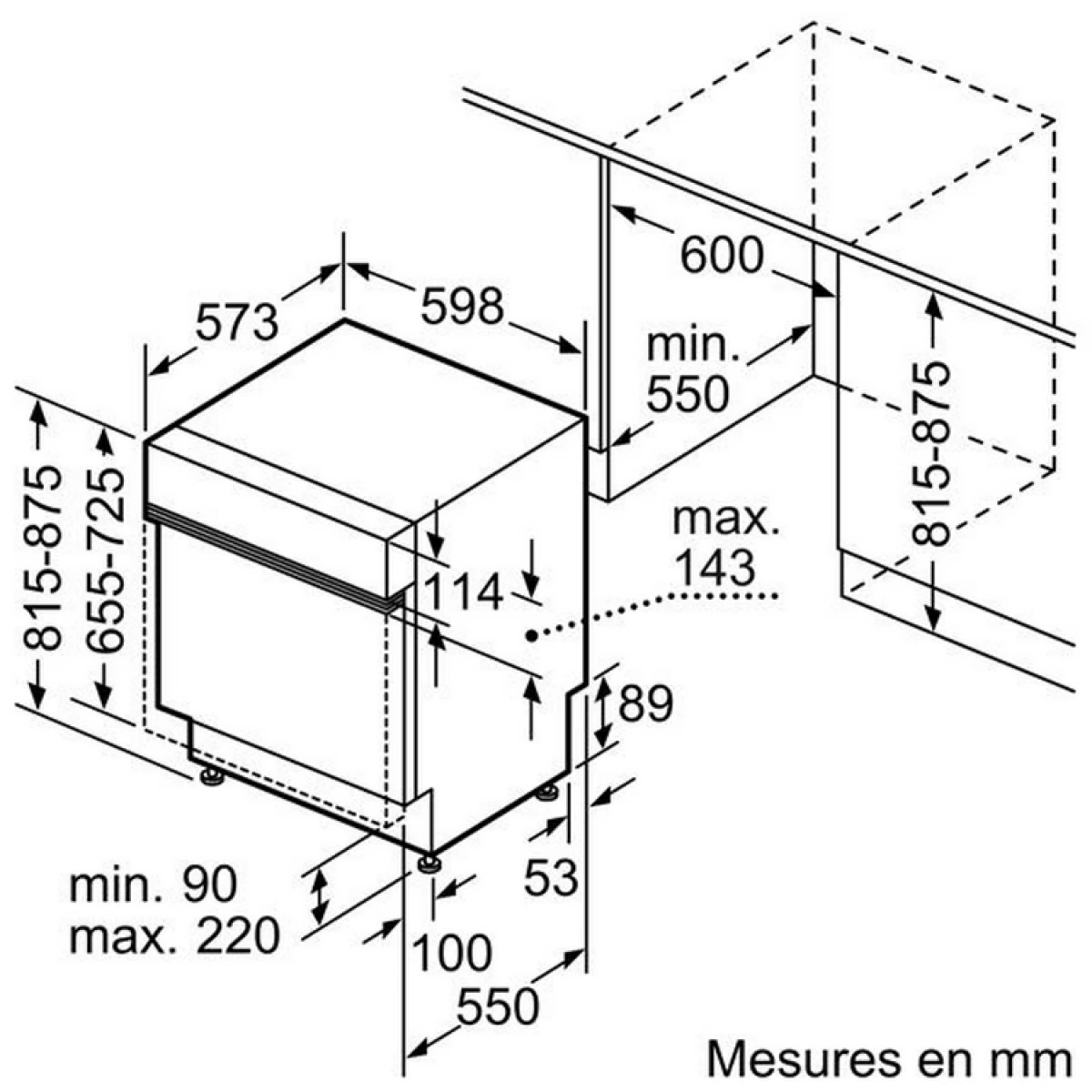 Dimensions Encastrement (LxHxP) : 60 x 81,5/87,5 x 55 cm.