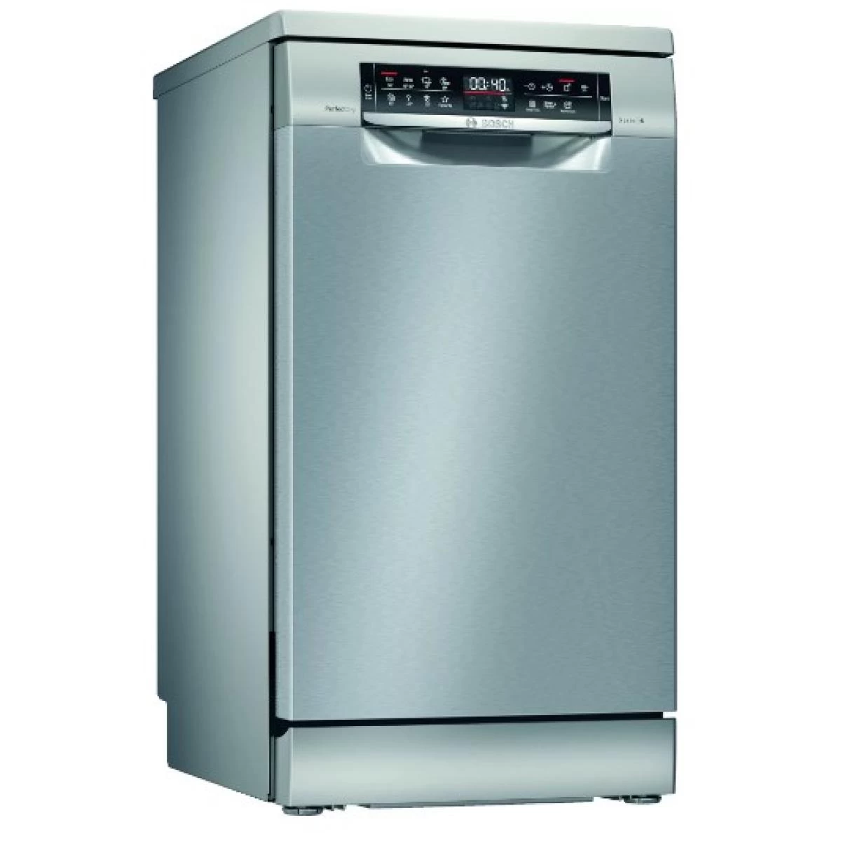 Bosch SPS6ZMI35E. Placement de l’appareil: Autoportante, Taille du produit: Compact (45 cm), Couleur de la porte: Acier inoxydable. Nombre de couverts: 10 couverts, Classe d’émission sonore: B, Niveau sonore: 43 dB. Réglage des pieds: 3 cm. Classe d’efficacité énergétique: C, Consommation d’eau par cycle: 9,5 L, Consommation d’énergie pour 100 cycles: 59 kWh. Largeur: 450 mm, Profondeur: 600 mm, Hauteur: 845 mm
