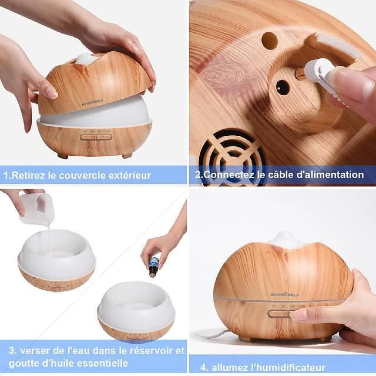 Points forts marque generique BYONDSELF- Diffuseur d’huile essentielle, Humidification Avec Télécommande Et Lumières LED 7 Couleurs Arrêt Automatique Sans Eau