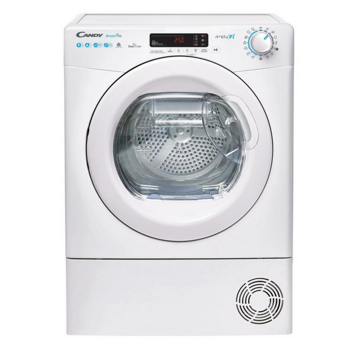 sèche-linge pompe à chaleur 60cm 9kg – csoh9a2de-s – Sèche-linge pompe à chaleur SMART PRO Candy CSOH9A2DE-S doté de 15 programmes dont 7 rapides. Programmes courts : 7 programmes rapides en accès direct, dont un Quotidien Parfait en 59 min, clairement identifiés par un code couleur sur la manette. Connectivité Wifi + Bluetooth : Grâce à l’application SimplyFi, accédez à 40 programmes supplémentaires et recevez des alertes pour entretenir votre sèche-linge. Bac à eau Easy Case : Un bac récupérateur d’eau situé dans la porte. Il est facile à transporter et à vider. Le niveau d’eau peut être contrôlé en un coup d’?il. Cuve réhaussée et hublot XXL : Un hublot large et réhaussé pour maximiser le confort d’utilisation. – Type de produit : Sèche-linge frontal.