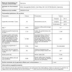 Siemens Lave Vaisselle 60 Cm SN23EW01ME IQ300,14 Cvts, 44 Db, 9,5L