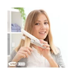 Fer à lisser portable et rechargeable avec power bankUn fer à lisser sans fil, une vraie petite révolution, idéal pour lisser ou onduler les cheveux à tout moment et en tout lieu grâce à sa taille compacte idéale pour les voyages. Il dispose d’un verrouillage de sécurité, d’un arrêt automatique et de plusieurs niveaux de température selon le type de cheveux. Ses plaques recouvertes de céramique n’abîment pas les cheveux.Très pratique, il peut également être utilisé comme batterie externe de secours, à tout moment et n’importe où.Caractéristiques : Verrou de sécurité. Inclut : sac de transport. Léger, maniable, compact. Utilisation pratique et simple. Batterie 2600 mAh / 3,7 V – 5V. Arrêt automatique : 20 minutes. Témoins LED de fonctionnement. Plaques à revêtement en céramique. Autonomie approximative : 45 minutes. Convient aux cheveux fins, moyens et épais. Type : sans fil et rechargeable (en 3 heures). Matériel : polyamide, PA66, acier inoxydable. Température réglable : 160°C – 180°C – 200°C. Multifonctions : lisseur à cheveux et power bank. Dimensions approximatives : 3 x 22 x 4 centimètres.