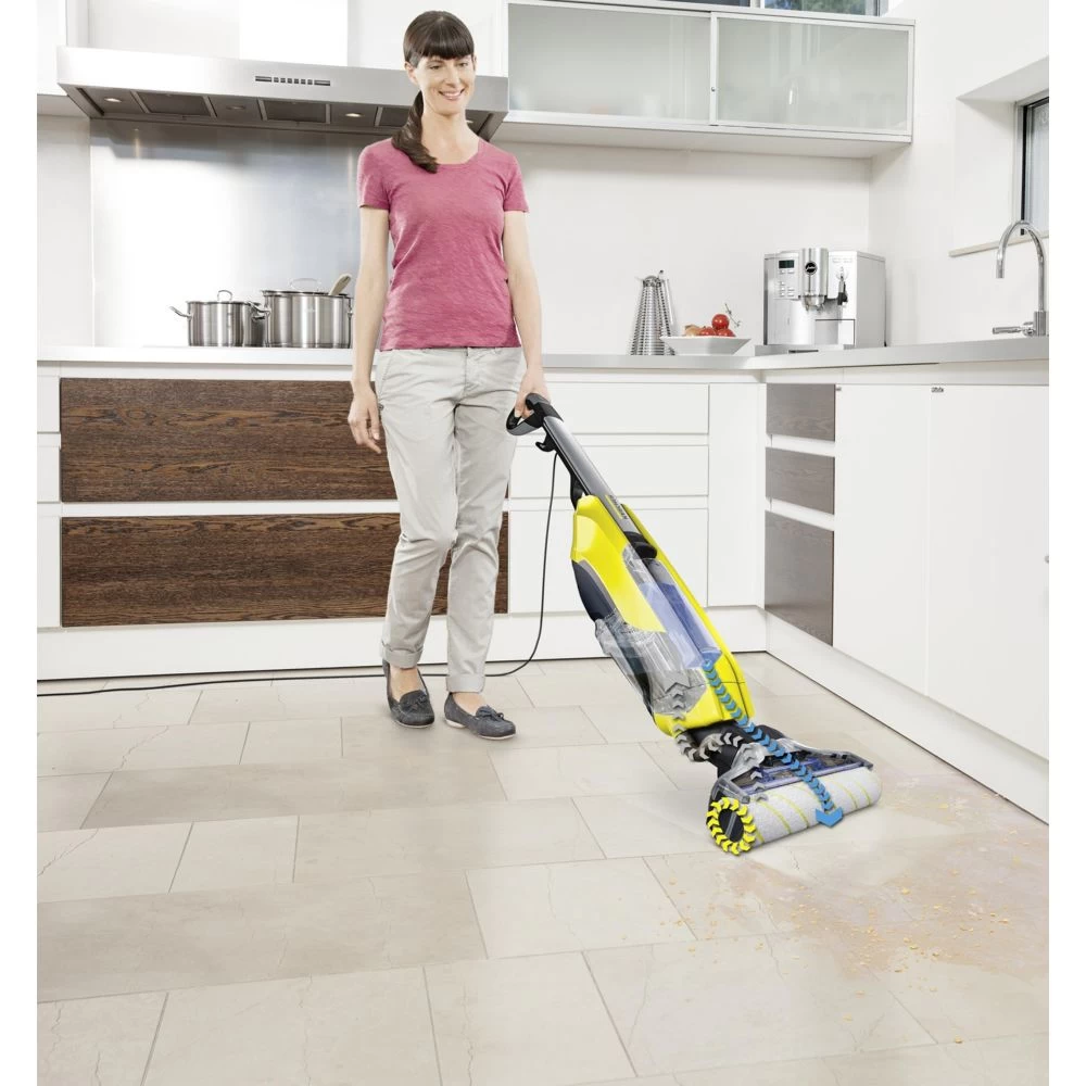 Nettoyeur de sols qui lave et aspire simultanément les petites particules