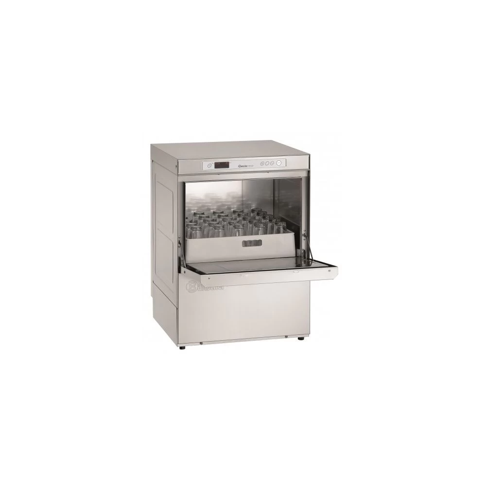 Lave-vaisselle professionnel – panier 500×500 mm – 5,06 kW – Bartscher Grâce au bras de rinçage avec un nouvel agencement des buses, le lave-vaisselle puissant permet d’obtenir des résultats de lavage parfaits. La combinaison avec la grille pour lave-vaisselle 500 permet d’utiliser la machine pour laver des casseroles, des bols ou des bacs à viande. Hauteur max. des assiettes : 345 mm.Hauteur max. des verres : 320 mm.Puissance : 5.06 kW.Tension : 400 V.Fréquence : 50 Hz.Raccord d’appareil : 3 NAC.Chauffage du chauffe-eau : 4.5 kW. Chauffage du réservoir : 2.7 kW.Convient à un usage professionnel continu : oui.Largeur : 595 mm. Profondeur : 630 mm. Hauteur : 845 mm.Poids : 59.0 kg. | Écoulement de l’eau : Ø 50 mm. Protection contre le fonctionnement à sec : oui. Porte à double paroi : oui. Encastrable : oui. Témoin lumineux de contrôle : Marche/arrêt, chauffe. Interrupteur de marche/arrêt : oui. Pompe à eau savonneuse : non. Adoucisseur d’eau : non . Pompe doseuse pour le rinçage : oui. Contacteur de porte : oui. Thermostat de sécurité : oui. Pompe doseuse pour le détergent : non. Dimensions du panier : 500 x 500 mm. Durée de fonctionnement : 60 / 90 / 120 / 180 secondes. Puissance / heure max. : 60 paniers. Nettoyage automatique : non. Rinçage à froid : non. À double paroi : non. Contenance du réservoir : 29 litre(s). Consommation d’eau à 2 bars : 2,3 litres. Pression de l’eau : 2 – 4 bars. Arrivée d’eau : G 3/4”. Compris :1 panier à verres, 1 panier à assiettes, 1 égouttoir à couverts, bagues d’étanchéité de rechange pour tuyau d’alimentation. Propriétés : Température de l’arrivée d’eau : Max. 60 °C, bras de rinçage qui permet un nettoyage facile, possibilité de laver des casseroles, des bols ou des bacs à viande avec la grille de lavage 500. Nombre de programmes de lavage : 4. Matériau : CNS 18/10.