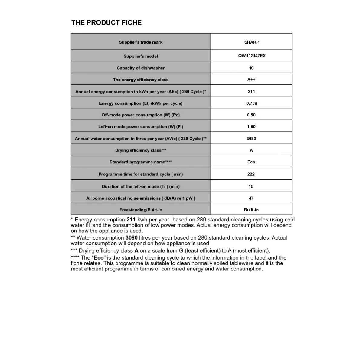 Compact et performantTout particulièrement adapté aux petits espaces, le lave-vaisselle intégrable QW-I1GI47EX, signé SHARP, a tout d’un grand ! Adapté à 10 couverts, il lave la vaisselle de toute la famille tout en réduisant à son minimum l’encombrement en cuisine. Doté de 8 programmes différents, ainsi que d’une fonction départ différé, il s’adapte à vos besoins pour vous accompagner dans votre vie quotidienne. Ce lave-vaisselle de L. 45 x H. 82 x P. 55 cm est pensé pour une fonctionnalité optimale. Vous apprécierez notamment son côté configurable, avec les supports pour verres à pied et les picots rabattables dans le panier du bas.Idéal dans une petite cuisineCe lave-vaisselle intégrable saura se faire une place dans toutes les cuisines. Pensé pour se fondre dans votre décor, il est facile à habiller d’une façade coordonnée à votre équipement, jouant alors la carte de la discrétion. Moderne, urbaine, industrielle, scandinave ou traditionnelle… à vous de choisir l’ambiance de votre cuisine, il s’adapte à vos envies.
