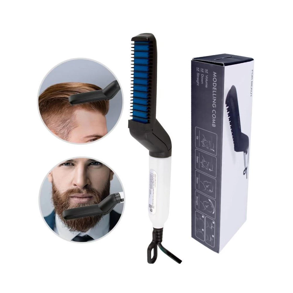 Ce mini-lisseur à barbe combine une brosse à cheveux et à barbe avec un lisseur. Sa puissance et sa chaleur vous offriront des finitions soignées de manière rapide et sans effort. Conçu spécialement pour les hommes, il n’abîmera pas votre barbe grâce aux ions négatifs dégagés.Léger, petit et ergonomique, il s’emmène facilement en déplacement professionnel mais également en voyage. Ce lisseur est un véritable gadget polyvalent : une fois votre barbe impeccable et le lisseur à bonne température, il convient parfaitement pour les cheveux.Caractéristiques : Bouton ON/OFF. Puissance : 10W. Compact et portable. Plaques de céramique. Ne convient pas aux enfants. Préchauffage rapide (15 sec). Convient pour cheveux & barbes. Température du lisseur : 110 – 130°C. Multi-effets : lisse, donne du volume, boucle… Dimensions approx du lisseur. : 24 x 3 x 4 centimètres. Dimensions approx du package. : 26 x 8 x 5 centimètres.