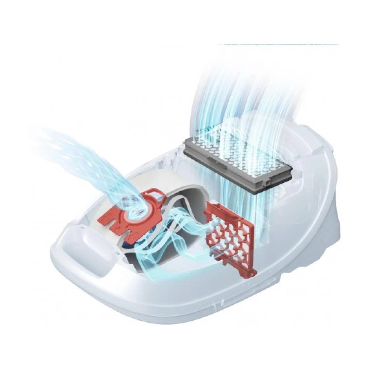 Au total, 11 niveaux de filtration : Sac HyClean Pure JFM + filtre moteur et filtre d’évacuation d’air.