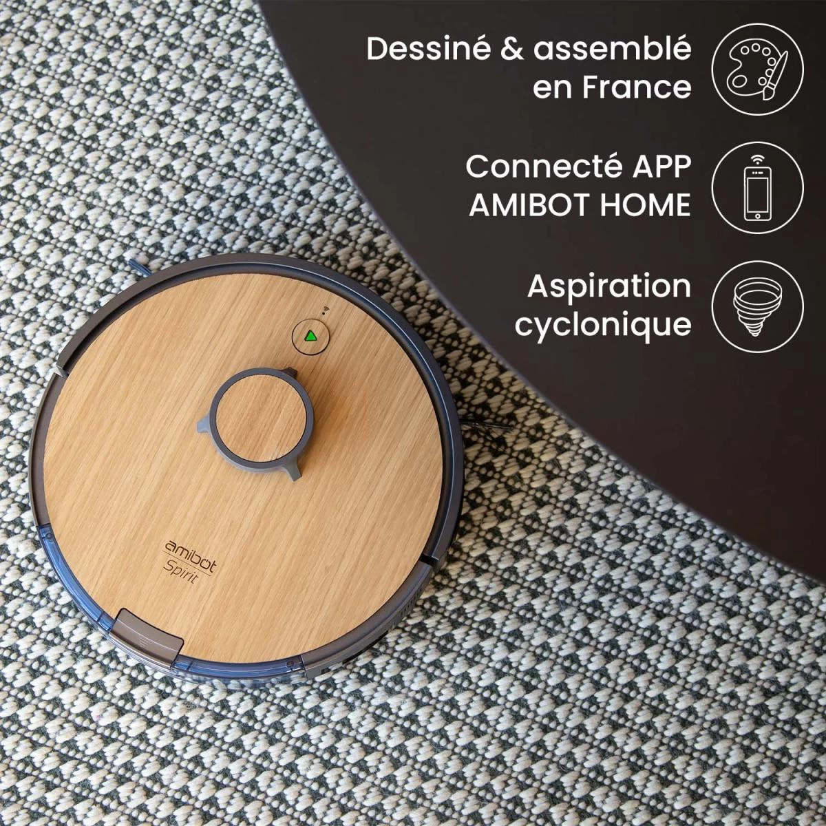 Le Spirit Origin est le fruit d’une initiative éco-responsable : dans une véritable démarche de production locale et de réduction de l’empreinte carbone, ce robot aspirateur est dessiné, assemblé et conditionné en France, dans les locaux AMIBOT, à Montpellier (34). Son capot en bois de chêne (contre-plaqué chêne* et médium*) apporte une touche d’originalité sans toucher aux performances attendues d’un aspirateur autonome connecté.