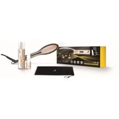 Fourni avec une pochette en velours thermorésistante et un échantillon 10ml de spray thermo protecteur.