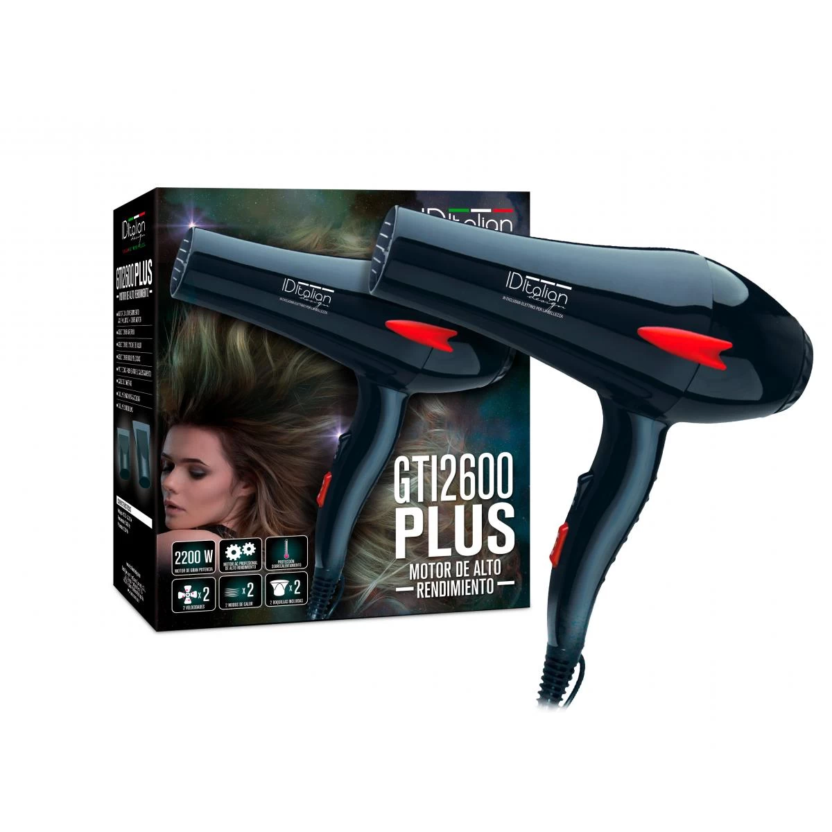 Sèche-cheveux GTI 2600s – 2000 W – 3 modos de température – 2 vitesses – Bouton d’air froid – Poids : 390 gr – Longueur de câble : 200 cm – Diffuseur
