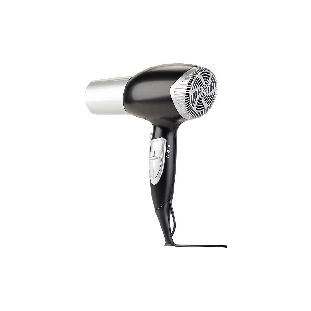 Sèche-cheveux à 2 niveaux de soufflerie et 3 niveaux de températureCe sèche-cheveux vous permet de choisir entre 2 niveaux de vitesse pour le flux d’air et 3 niveaux pour la température. Dès la sortie de la douche, retrouvez des cheveux parfaitement secs très rapidement. L’atout de ce sèche-cheveux : il ionise l’air soufflé afin d’éviter le chargement statique des cheveux. Pour des cheveux plus brillants, plus faciles à coiffer et qui ne s’envolent pas au contact d’un pull ou bonnet en matière synthétique.Grâce au choix du niveau de température, vous préservez vos cheveux. Car l’air très chaud sèche certes plus rapidement, mais peut également dessécher vos cheveux et les rendre cassants. Pour les sécher sans les abîmer, choisissez le niveau de température le plus faible. Utilisez le concentrateur pour un flux d’air puissant et ciblé. Et après le brushing, terminez par la fonction Air froid pour fixer la coiffure et obtenir plus de brillance.Sèche-cheveux ionique avec 3 niveaux de température et fonction Air froid2 niveaux de vitesses pour le flux d’airIonisation de l’air pour un effet antistatique1 concentrateur pour des brushings parfaitsPuissance : 2200 WArrêt automatique en cas de surchauffeAlimentation : 230 V, longueur du câble : env. 160 cmColoris : noir et argentDimensions : 8,8 x 26,8 x 23,2 cm, poids : 540 g