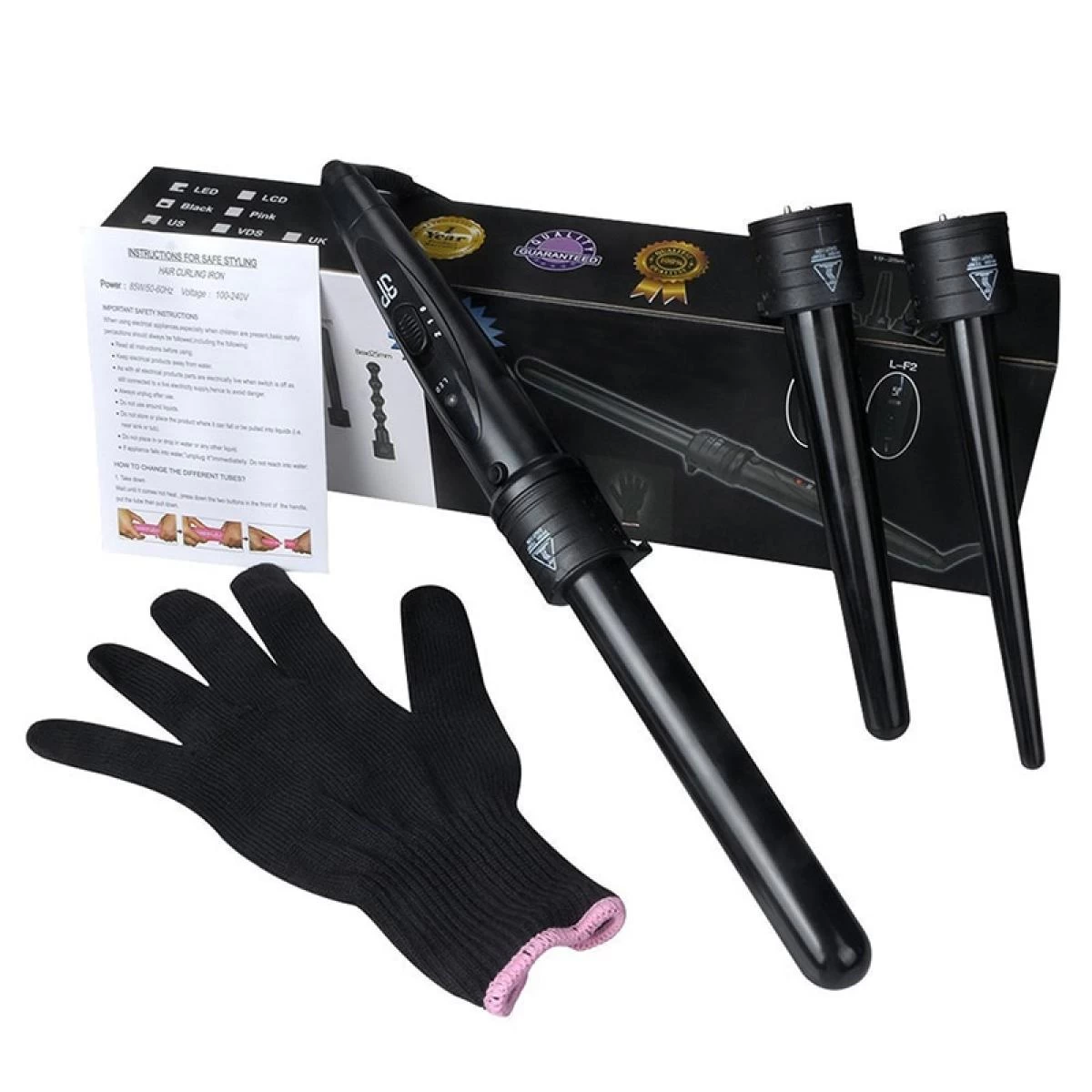 Barils en céramique interchangeables: la taille des barils de curling est de 0,35 à 0,71 pouces, de 0,71-1 pouce, de 1-1,25 pouces, 1-1,25 pouce, 1,25-1,25 pouce. Ces tailles vous donnent cinq options, répondent à vos différents besoins de style de curling, telles que de grosses boucles, des vagues, des boucles de tire-bouchons et des gélules et des rebonds.