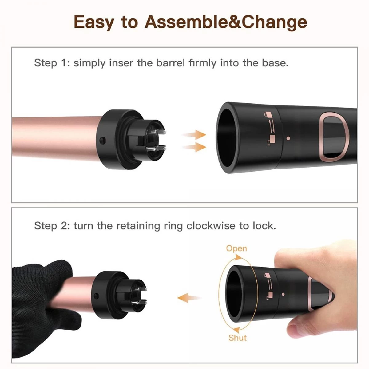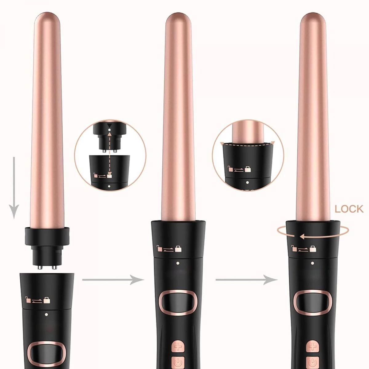 Points forts Universal Jeu de baguette magique professionnelle en fer bouclé 5 en 1 avec tuile en céramique interchangeable 5/3P et coiffeur |