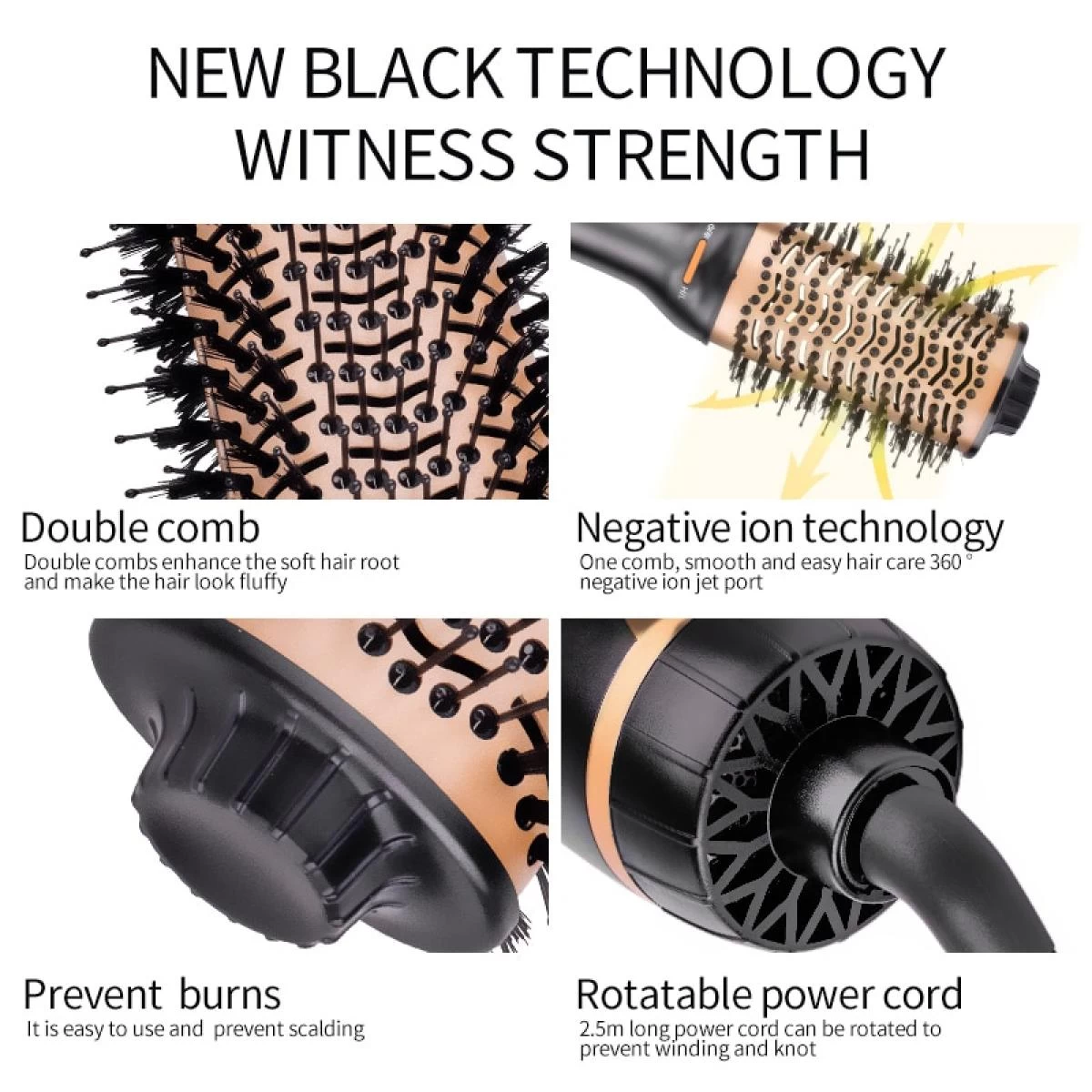 Points forts Universal Sèche-cheveux 5 en 1, brosse à souffler et brosse à sèche-cheveux, peigne rotatif