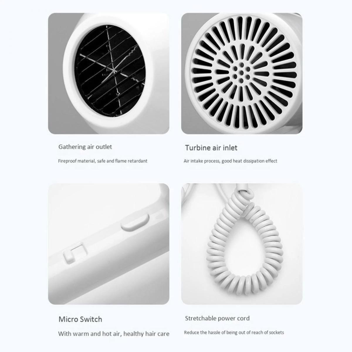 Faible bruit – avec une mise en page plus raisonnable de la structure interne et une optimisation de la réduction du bruit de composant, qui peut réduire les décibels de bruit lorsque le sèche-cheveux fonctionne
