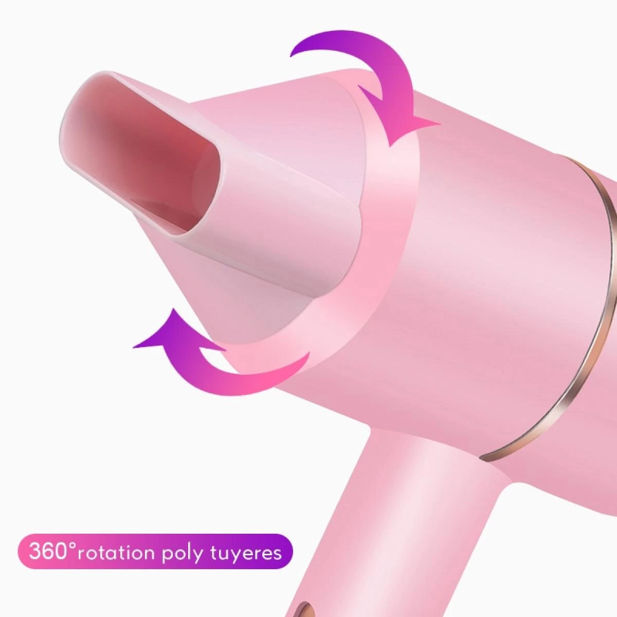Points forts Universal Sèche-cheveux professionnel froid et chaud 8000 vent fort mini sèche-cheveux souffleur électrique air collector anion nano 210 240V | Sèche-cheveux (rose)