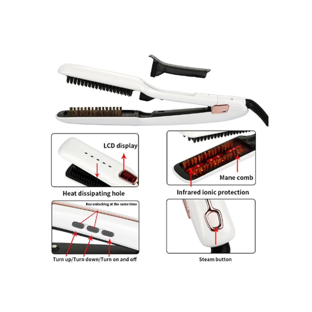 Points forts marque generique YP Select Multifonctionnel Ion Négatif Infrarouge Pulvérisation Vapeur Cheveux Raides Peigne Lisseur Cheveux Raides Curler