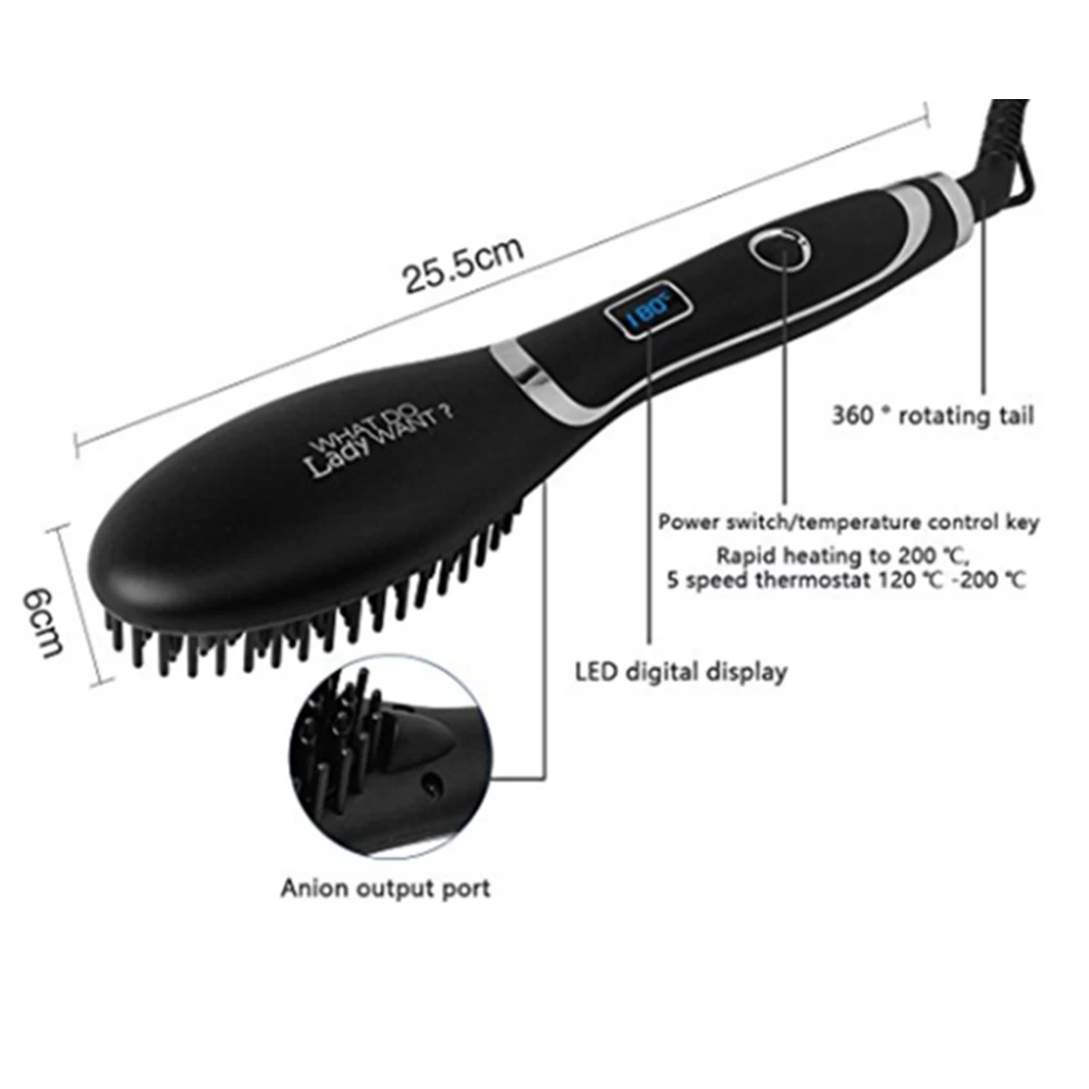 - Ces ions mis à jour éliminent les frisottis et les plats en céramique sont conçus pour durer. Cette petite et exquise brosse à lisser les cheveux vraiment facile à utiliser, appuyez longuement pour l’allumer et l’éteindre, réglez la température appropriée pour vos cheveux via l’écran LCD lorsqu’il est allumé. Pratique à réaliser car il est assez léger.